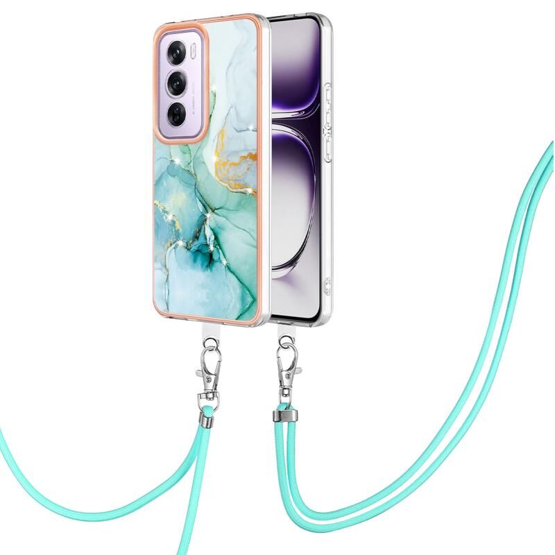 Θήκη τηλεφώνου για OPPO Reno12 Pro Global Electroplating Marble Dual-side IMD με κορδόνι (Μωβ 001)