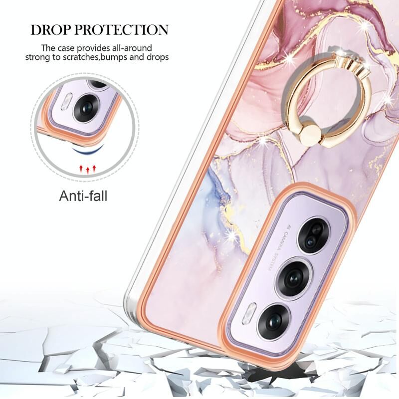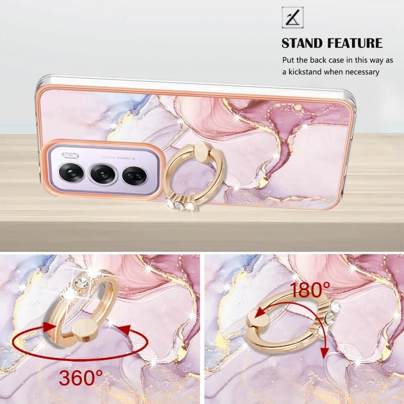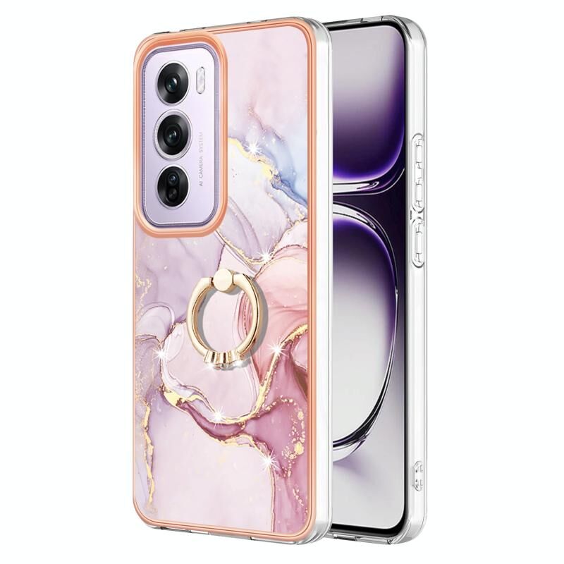 Θήκη τηλεφώνου OPPO Reno12 Pro Global Electroplating Marble IMD TPU με Δακτύλιο Στήριξης (Ροζ Χρυσός 005)