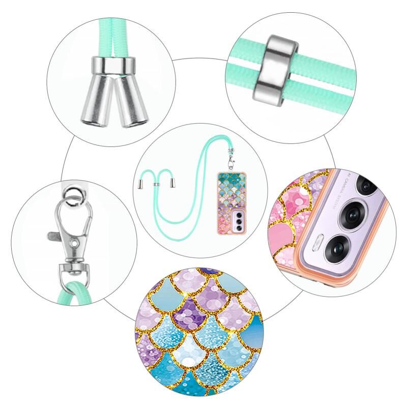 Θήκη προστασίας για OPPO Reno12 Pro Global με μοτίβο ηλεκτρολυτικής επιμετάλλωσης IMD TPU, αντικραδασμική, με κορδόνι λαιμού (Πολύχρωμες Λέπια).