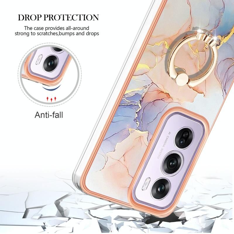 Θήκη προστασίας για OPPO Reno12 Pro Global με γαλβανισμένο σχέδιο IMD TPU, ανθεκτική σε κρούσεις με δαχτυλίδι στήριξης και ρητίνες (Λευκό Μάρμαρο Γαλαξία).
