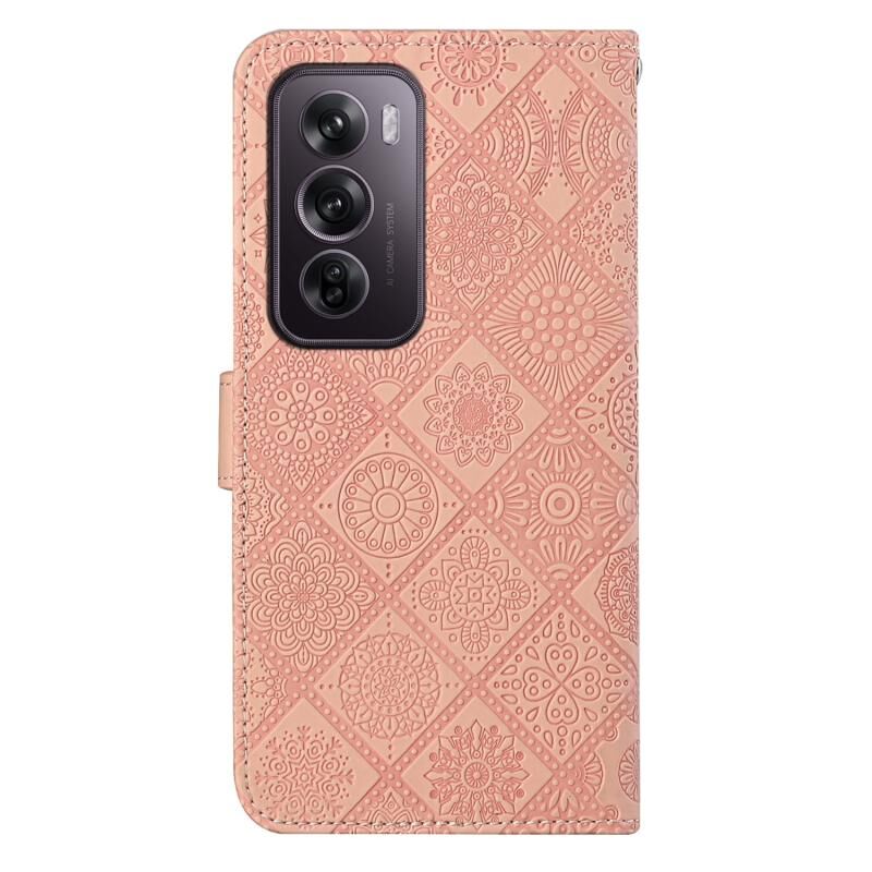 Θήκη τηλεφώνου δερμάτινη με ανάγλυφο σχέδιο εθνικού στυλ για OPPO Reno12 Pro Global (Ροζ)