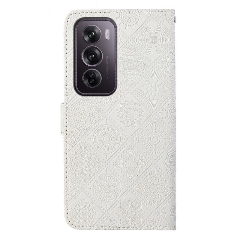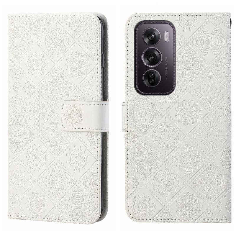 For OPPO Reno12 Pro Global Ethnic Style Embossed Pattern Leather Phone Case(White)