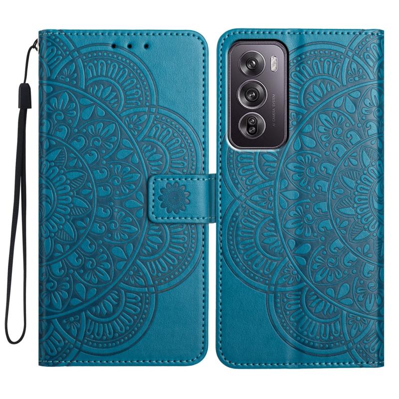 For OPPO Reno12 Pro Global Flower Embossed Leather Phone Case(Blue)