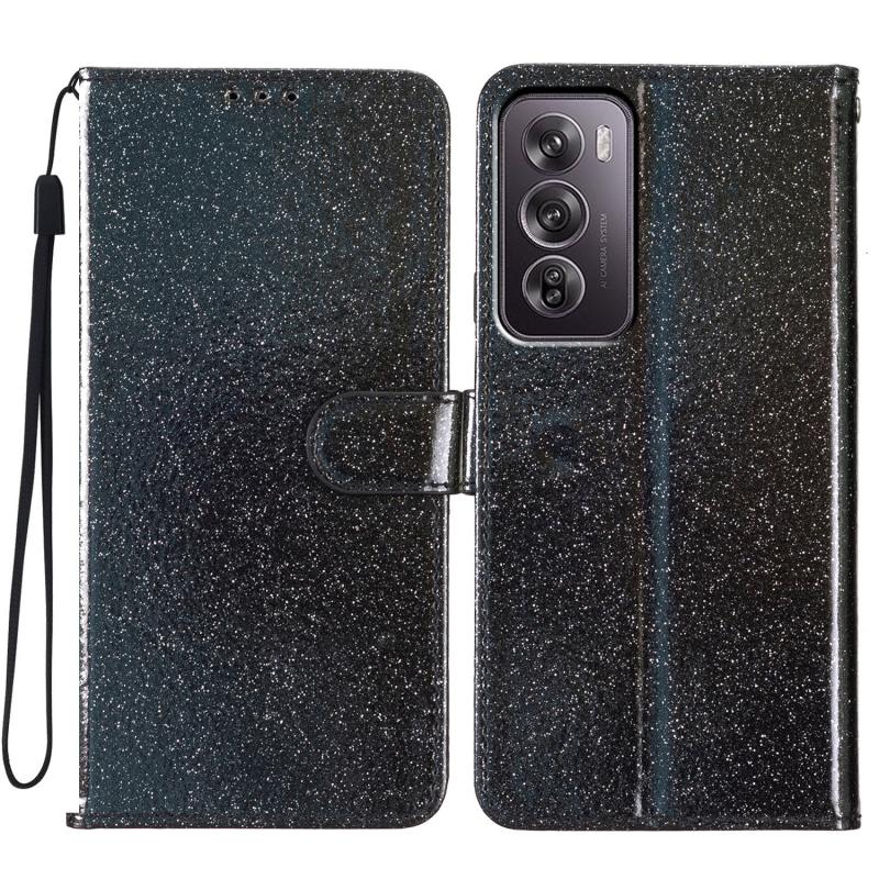 For OPPO Reno12 Pro Global Glitter Powder Flip Leather Phone Case(Black)