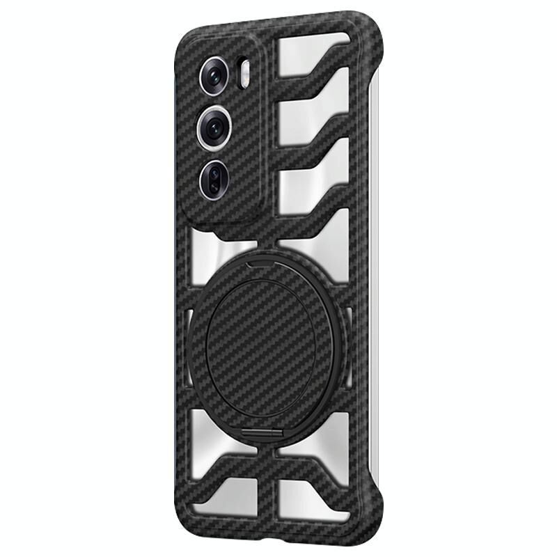 For OPPO Reno12 Pro Global Hollow Carbon Fiber Rotating Bracket MagSafe Phone Case(Black)