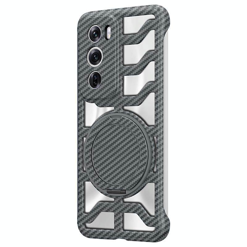 For OPPO Reno12 Pro Global Hollow Carbon Fiber Rotating Bracket MagSafe Phone Case(Grey)
