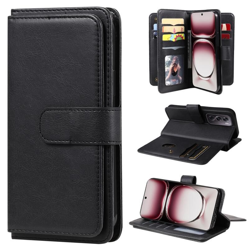 Για OPPO Reno12 Pro Global Πολυλειτουργικό πορτοφόλι 10 υποδοχές καρτών Δερμάτινη θήκη τηλεφώνου (μαύρο)