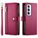 Για OPPO Reno12 Pro Global Nine Card-slot φερμουάρ πορτοφόλι τσάντα δερμάτινη θήκη τηλεφώνου (κόκκινο)