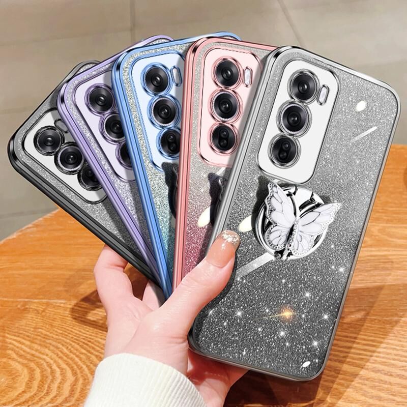 Θήκη τηλεφώνου TPU με σχέδιο πεταλούδας σε αποχρώσεις του μωβ, με μεταλλική επίστρωση και διαβάθμιση χρώματος για OPPO Reno12 Pro Global. (Μπλε Σιέρρα)