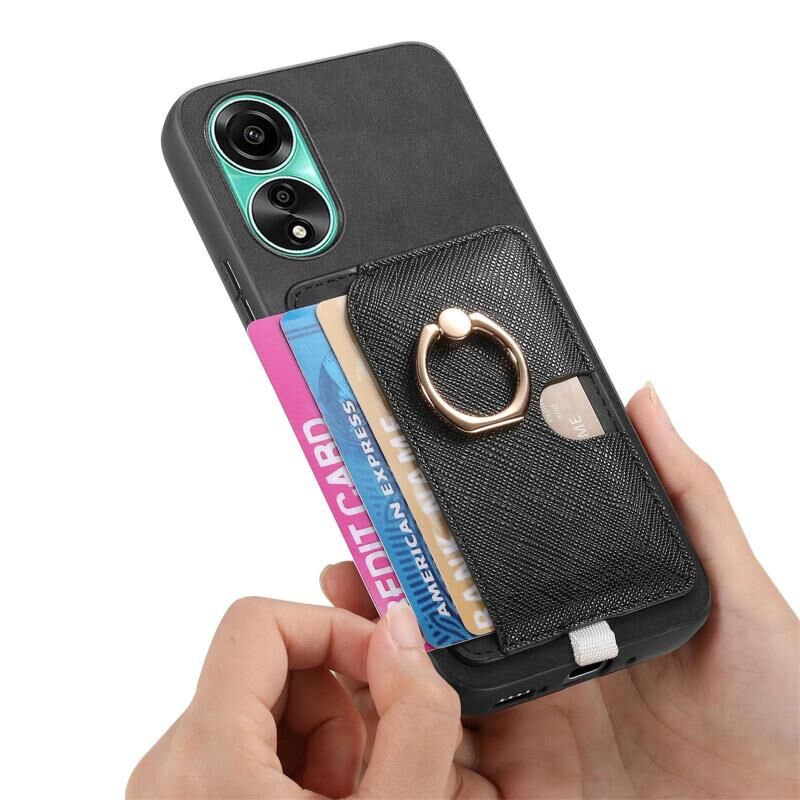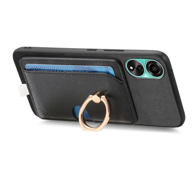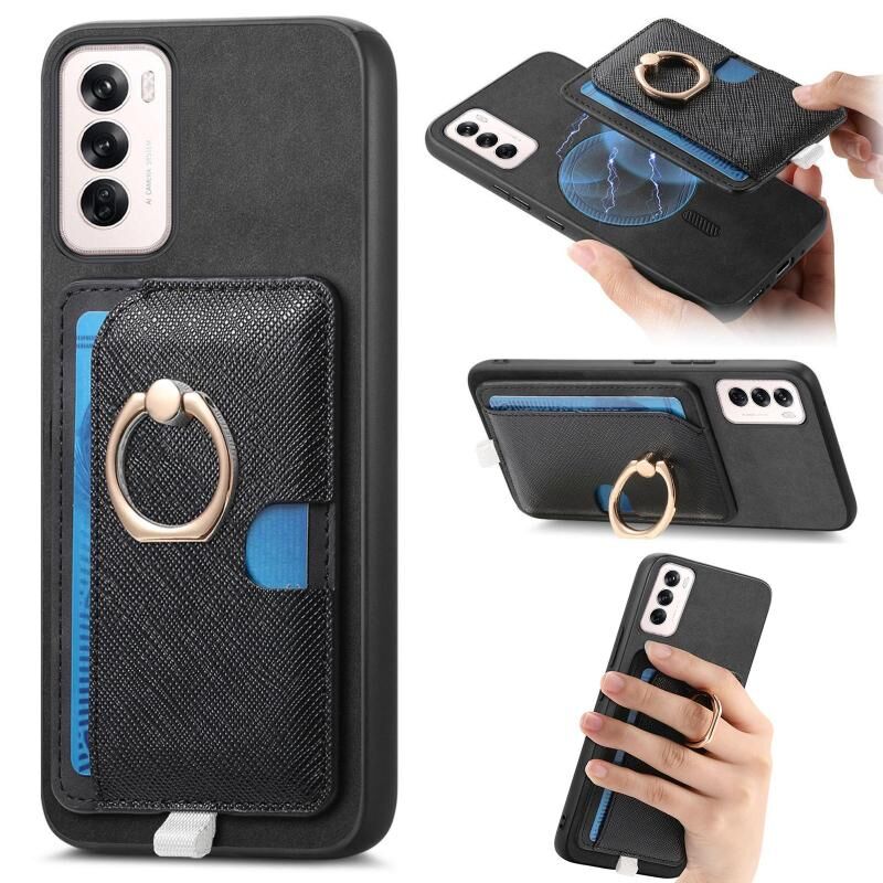 Θήκη τηλεφώνου OPPO Reno12 Pro Global Retro Cross Leather Ring Side Insert Card Bag MagSafe (Μαύρο)