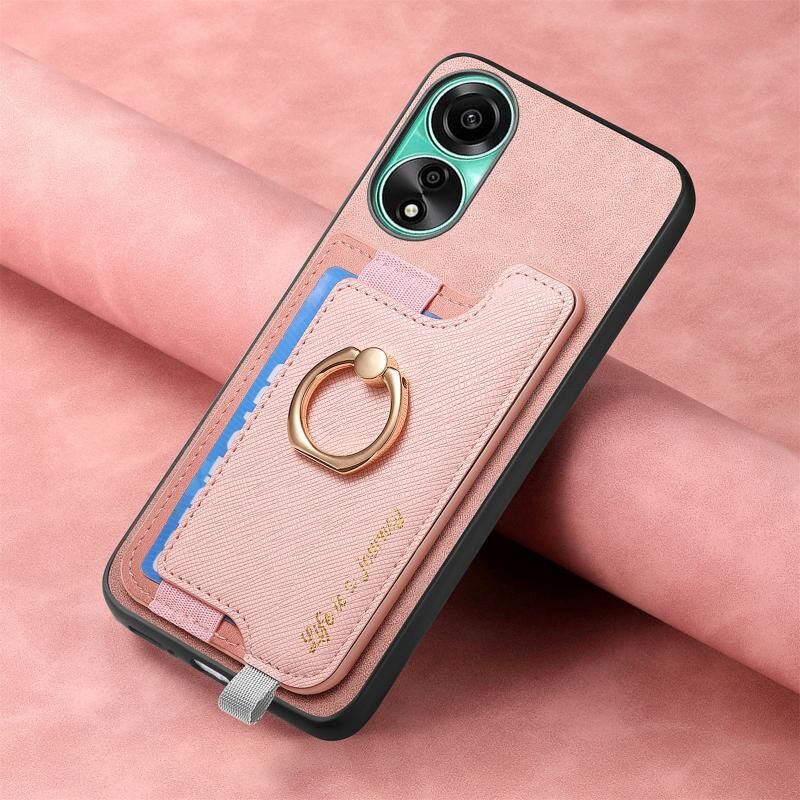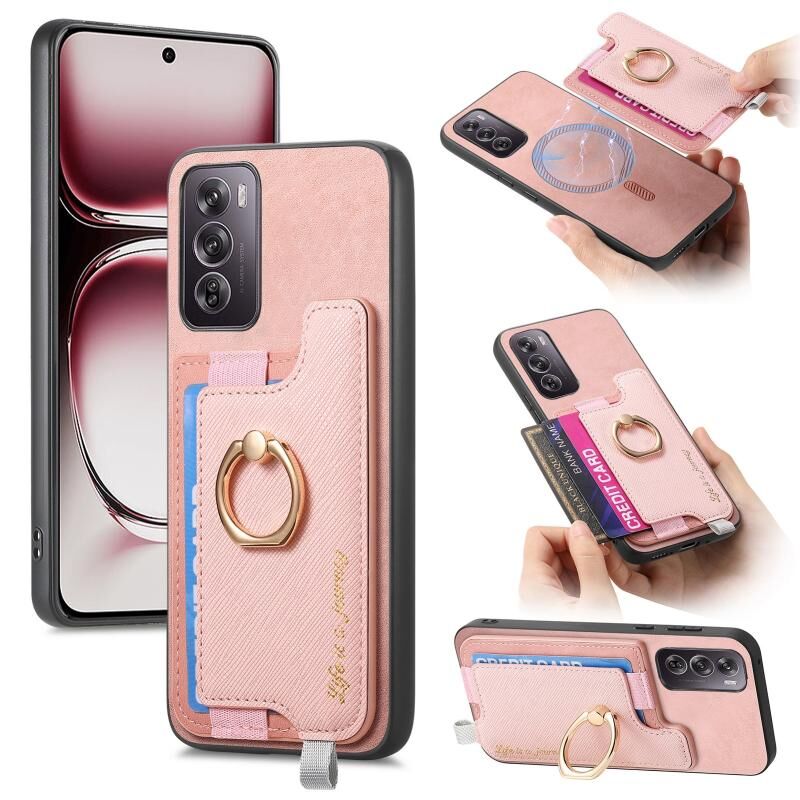 Θήκη τηλεφώνου για OPPO Reno12 Pro Global Retro Magsafe Cross Δερμάτινος Δακτύλιος Κάρτας (ρόζ)