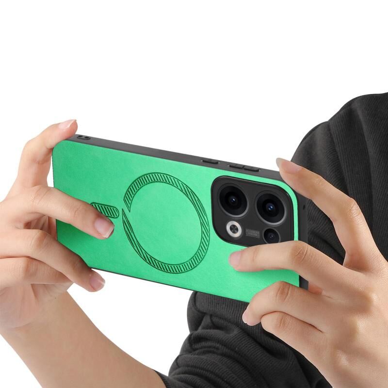 Θήκη κινητού τηλεφώνου OPPO Reno12 Pro Global Retro Magsafe Μαγνητική PU Πίσω Κάλυψη (Μπλε)