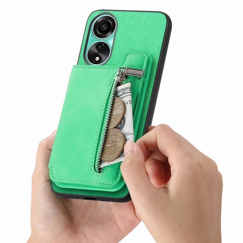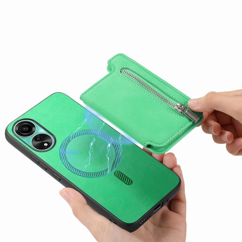 Θήκη κινητού τηλεφώνου για OPPO Reno12 Pro Global Retro MagSafe με θήκη πορτοφολιού και φερμουάρ (Ροζ)