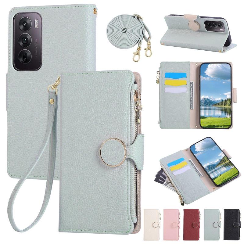 For OPPO Reno12 Pro Global Round Buckle Zipper Wallet Leather Phone Case with Crossbody Strap(Sky Blue)
