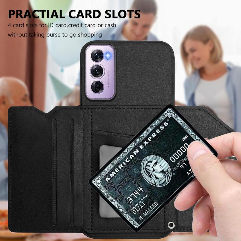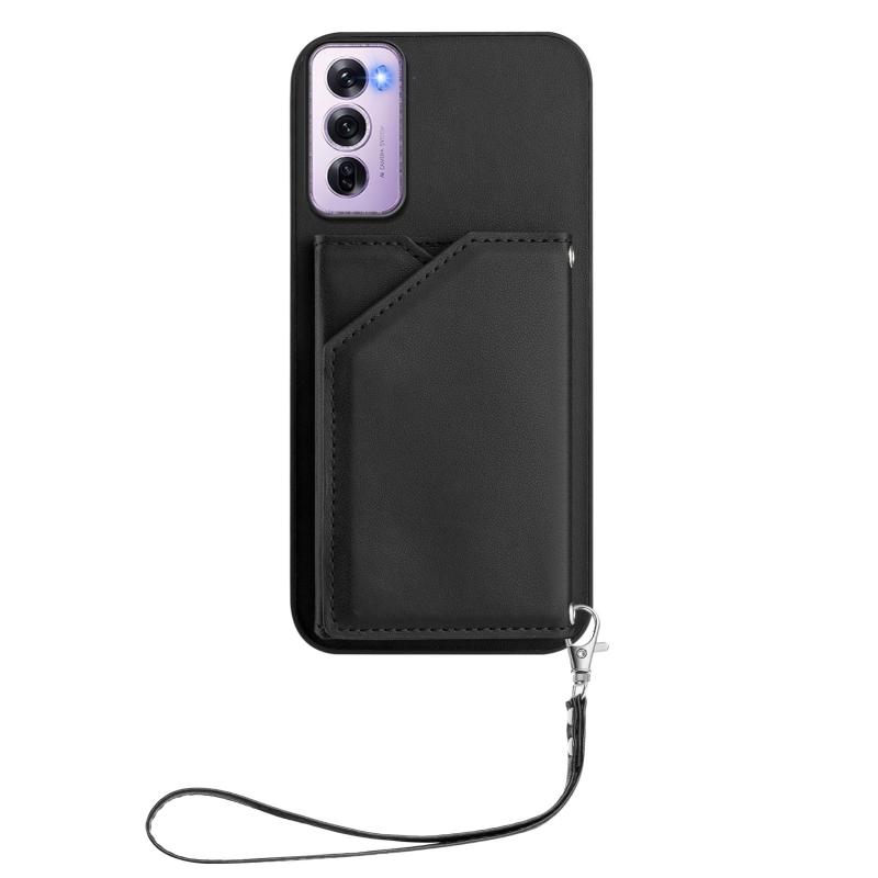 For OPPO Reno12 Pro Global Skin Feel Four Card Slots Phone Case with Wrist Strap(Black)