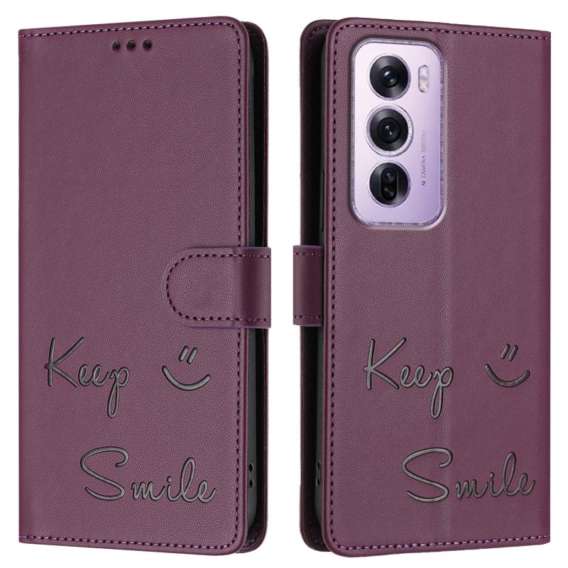 For OPPO Reno12 Pro Global Smile Embossing RFID Leather Phone Case(Violet)