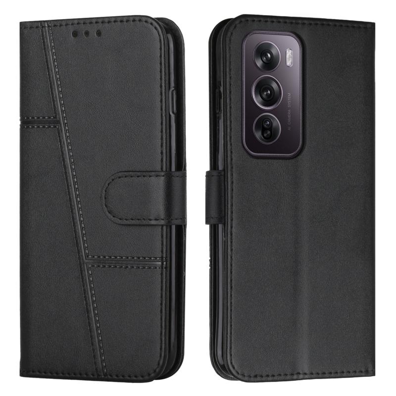 For OPPO Reno12 Pro Global Stitching Calf Texture Buckle Leather Phone Case(Black)