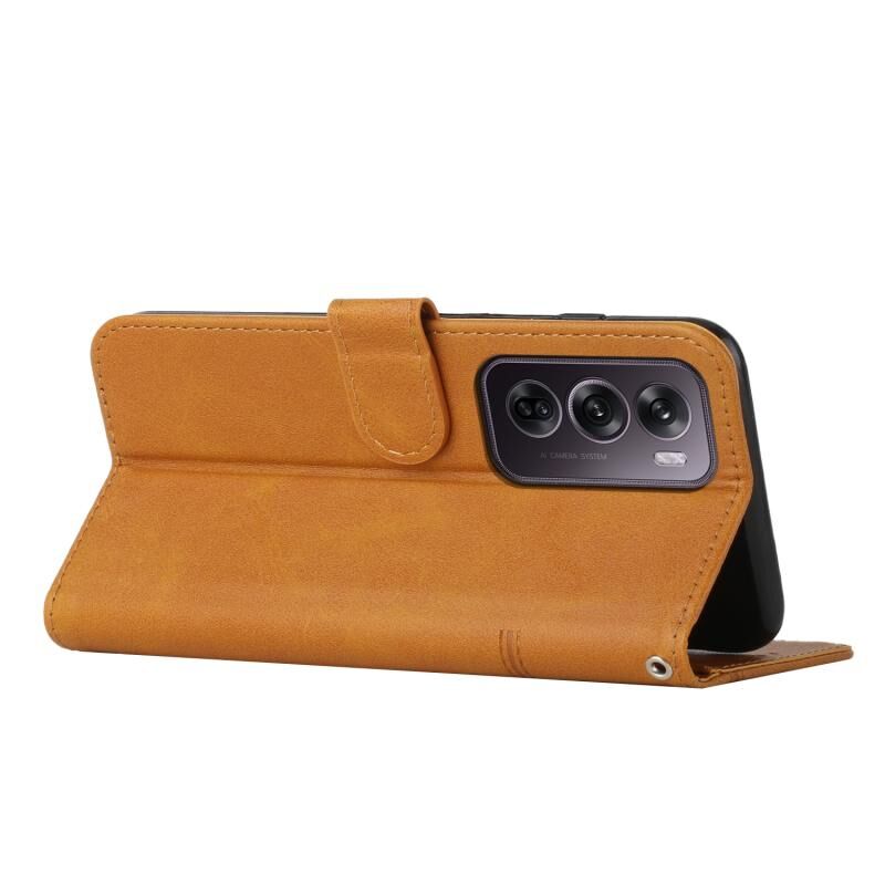 Θήκη τηλεφώνου από δέρμα με αγκράφα και υφή μοσχαριού για OPPO Reno12 Pro Global (Κίτρινο)