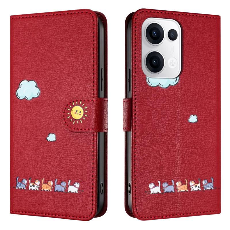 For OPPO Reno13 5G Global Cartoon Cats Leather Phone Case(Red)