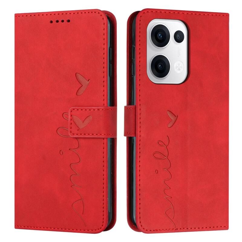Για OPPO Reno13 5G Global Skin Feel Heart ανάγλυφη δερμάτινη θήκη τηλεφώνου με μακρύ κορδόνι (κόκκινο)