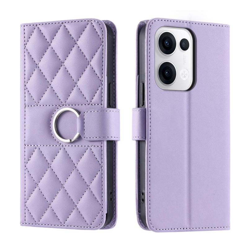For OPPO Reno13 5G Ring Buckle Rhombic Leather Phone Case(Purple)