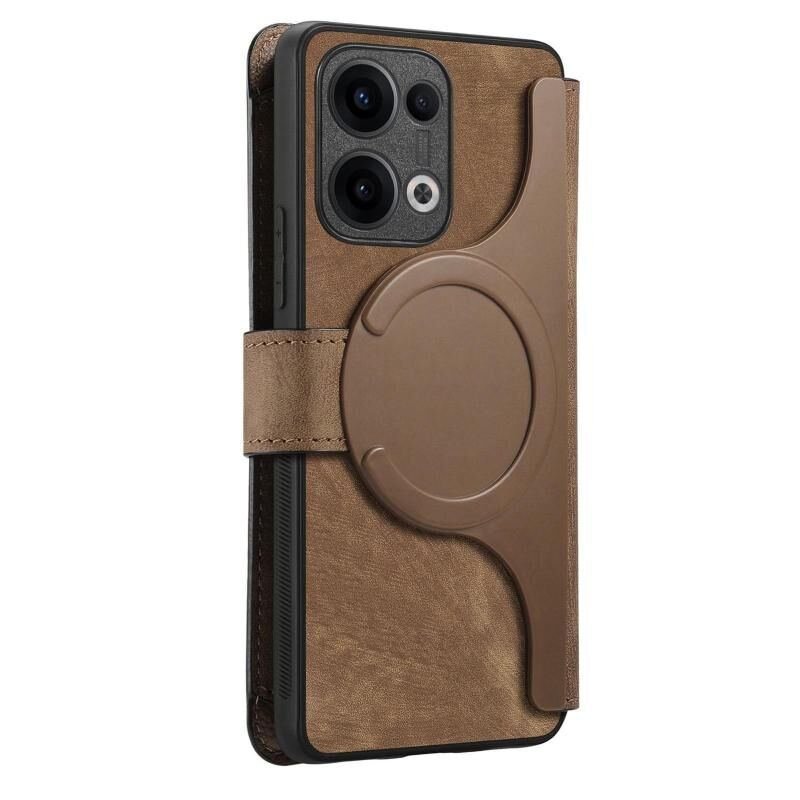 Θήκη για OPPO Reno13 CaseNeo με MagSafe, προστασία RFID κατά της κλοπής, φερμουάρ και πορτοφόλι, από δέρμα σε ρετρό στυλ (Μαύρο) (Καφέ)