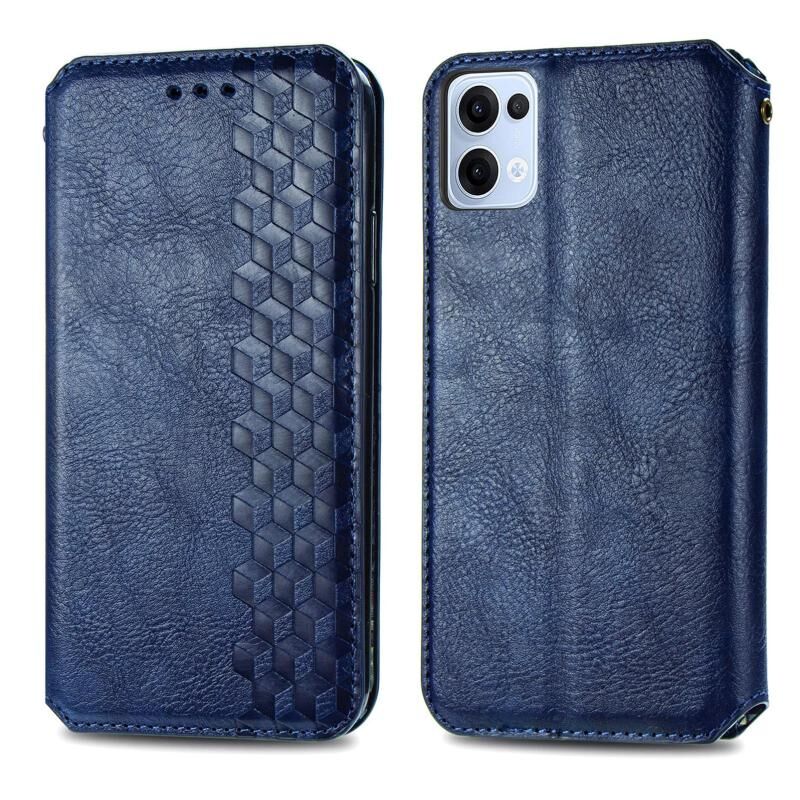 Θήκη τηλεφώνου από μαγνητικό δέρμα με ανάγλυφο κυβικό πλέγμα για OPPO Reno13 (Μπλε)