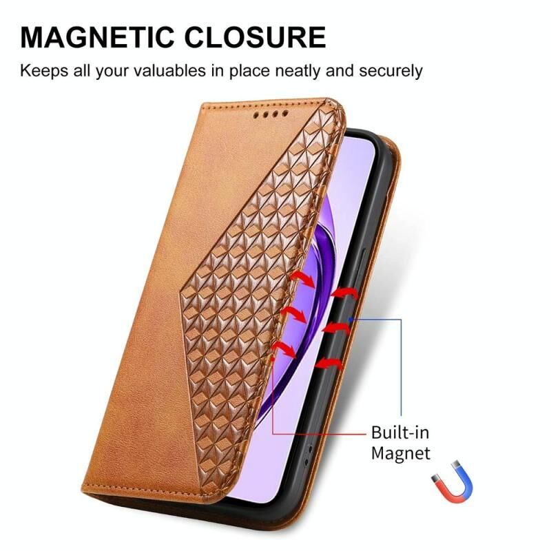 Για OPPO Reno13 F 4G / 5G Cubic Grid Calf Texture μαγνητική δερμάτινη θήκη τηλεφώνου (κίτρινο)