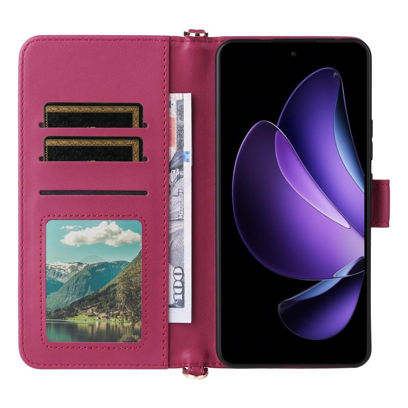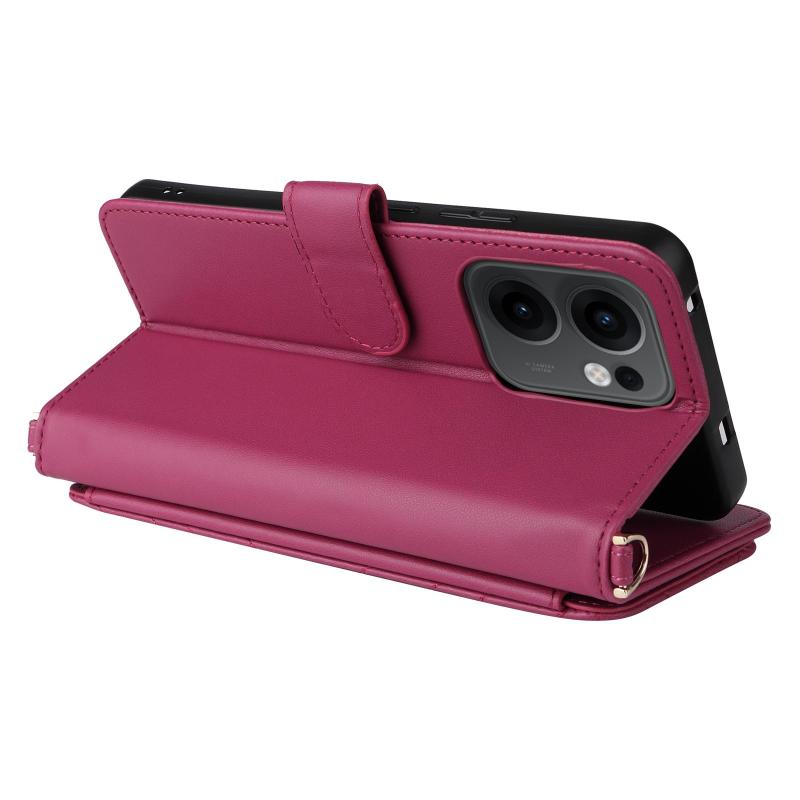 For OPPO Reno13 F 4G / 5G Multifunctional 6-Card Slots Leather Phone Case with Wrist Strap(Rose Red)