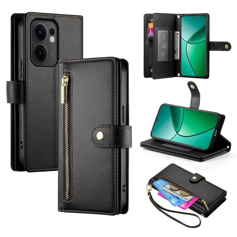 Για OPPO Reno13 F 4G / 5G Nine κάρτα-θυρίδα φερμουάρ πορτοφόλι τσάντα δερμάτινη θήκη τηλεφώνου (μαύρο)