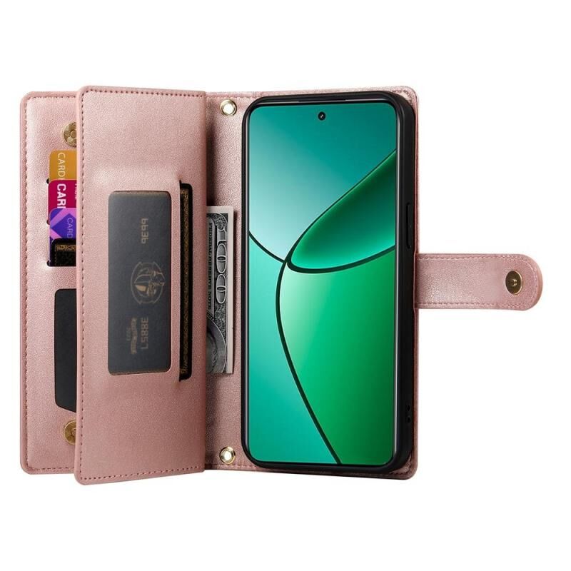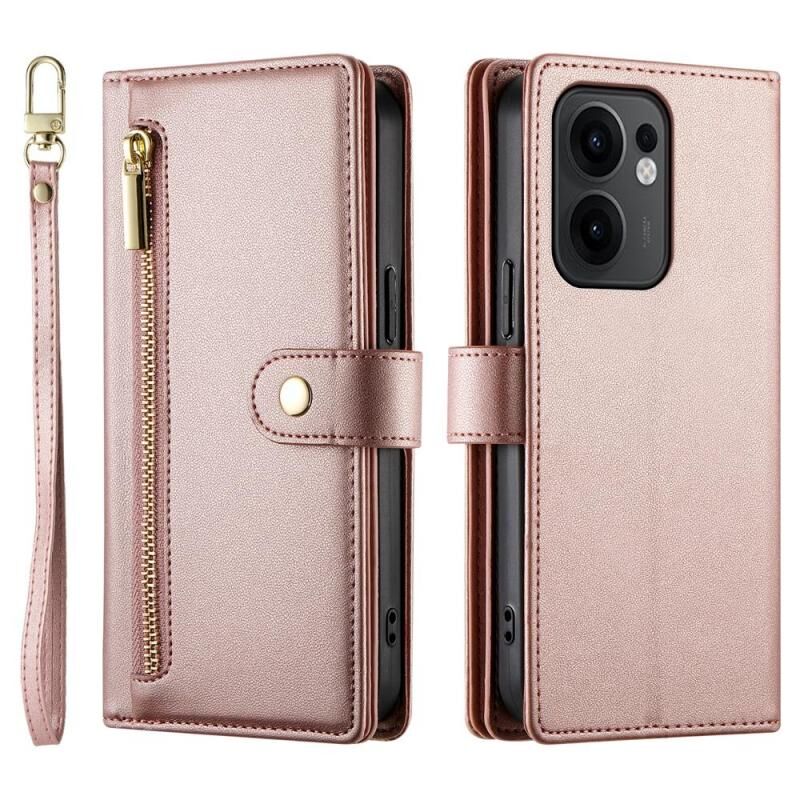 Για OPPO Reno13 F 4G / 5G Nine κάρτα-θυρίδα φερμουάρ πορτοφόλι τσάντα δερμάτινη θήκη τηλεφώνου (ροζ)