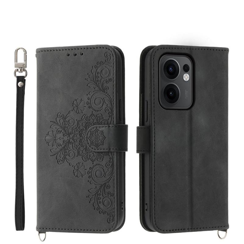 For OPPO Reno13 F 4G / 5G Skin Feel Flowers Embossed Wallet Leather Phone Case(Black)