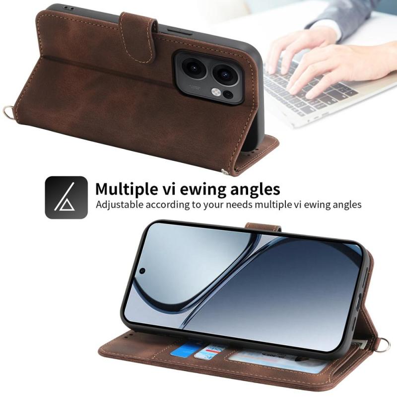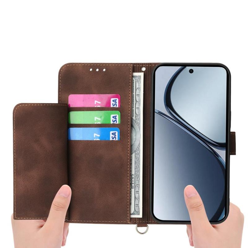 For OPPO Reno13 F 4G / 5G Skin Feel Flowers Embossed Wallet Leather Phone Case(Brown)