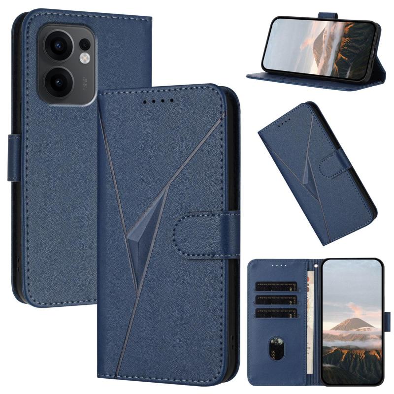 Θήκη τηλεφώνου από δέρμα με μαγνητικό κούμπωμα και τριγωνικό μοτίβο για OPPO Reno13 F 4G / 5G (Βασιλικό μπλε)