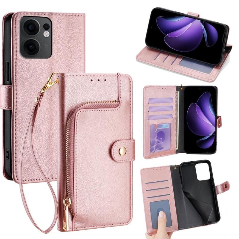 For OPPO Reno13 F 5G / 4G Zipper Bag Leather Phone Case(Rose Gold)