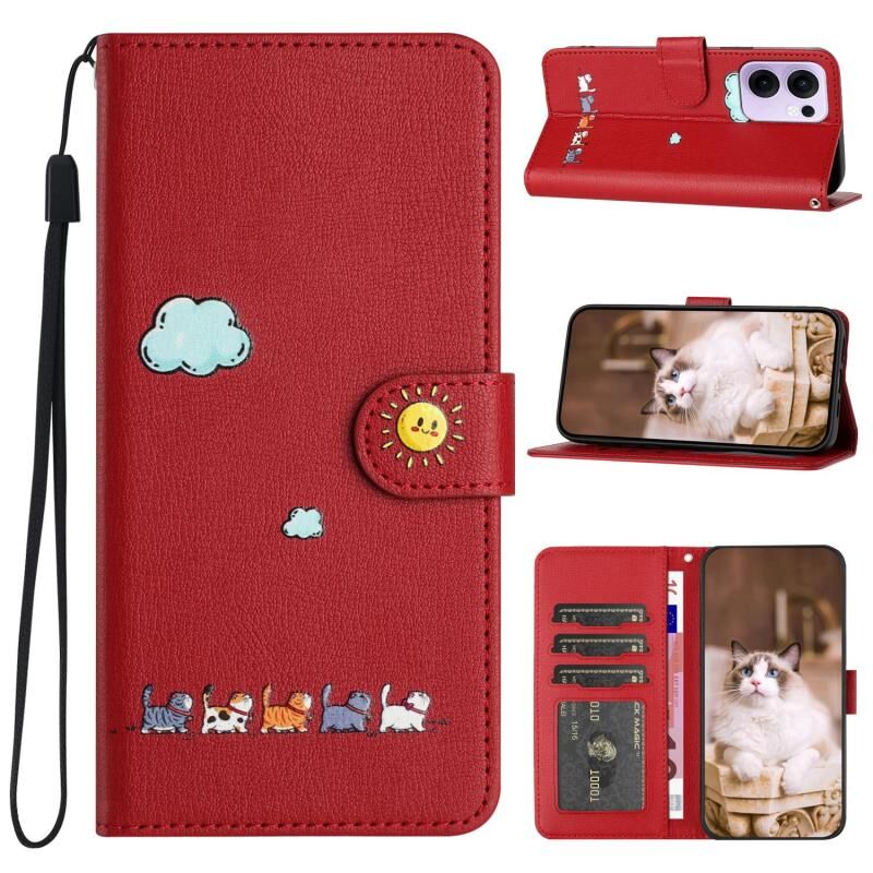 For OPPO Reno13 F 5G Cartoon Cats Leather Phone Case(Red)