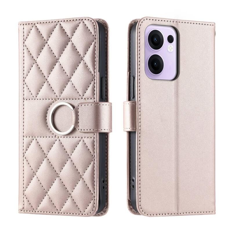For OPPO Reno13 F 5G Global / 4G India Ring Buckle Rhombic Leather Phone Case(Rose Gold)