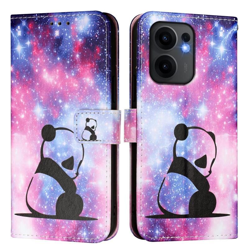For OPPO Reno13 F 5G Global Colored Drawing Pattern Plain Weave Leather Phone Case(Baby Panda)