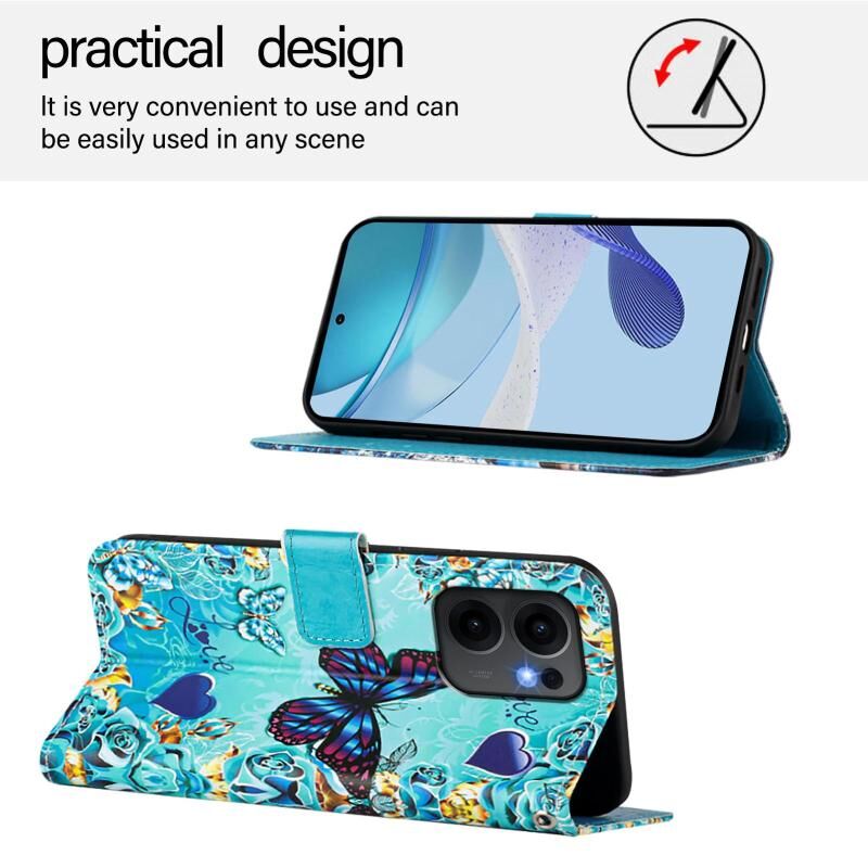 For OPPO Reno13 F 5G Global Colored Drawing Pattern Plain Weave Leather Phone Case(Caring Butterfly)