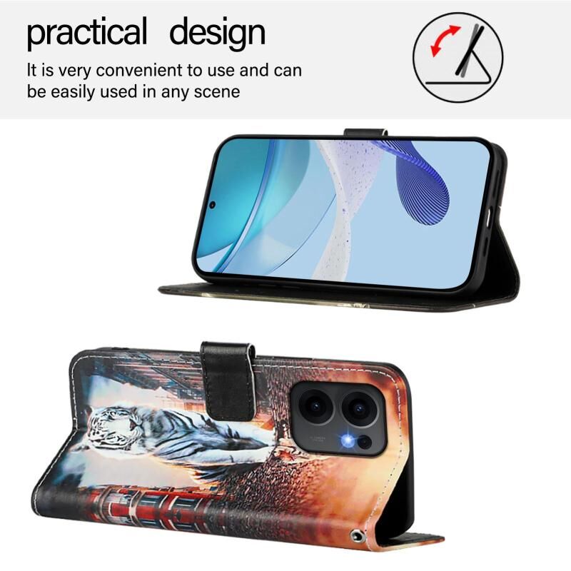 For OPPO Reno13 F 5G Global Colored Drawing Pattern Plain Weave Leather Phone Case(Cats And Tigers)