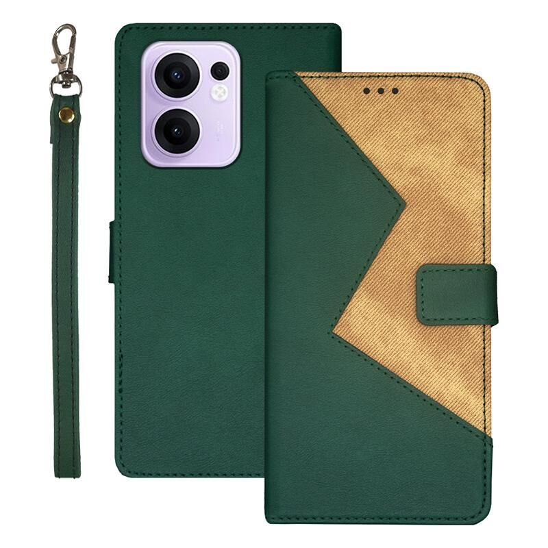 For OPPO Reno13 F 5G idewei Two-color Splicing Leather Phone Case(Green) (idewei)