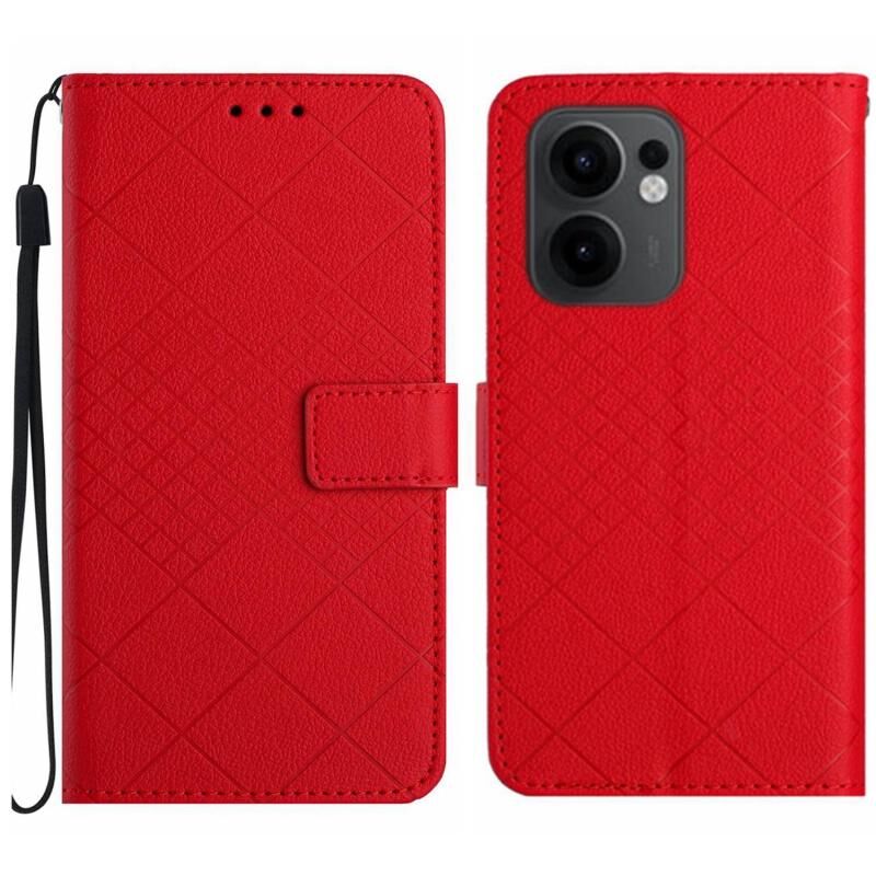 Για OPPO Reno13 F 5G Rhombic Grid Υφή δέρμα τηλέφωνο υπόθεση (κόκκινο)