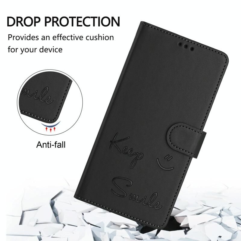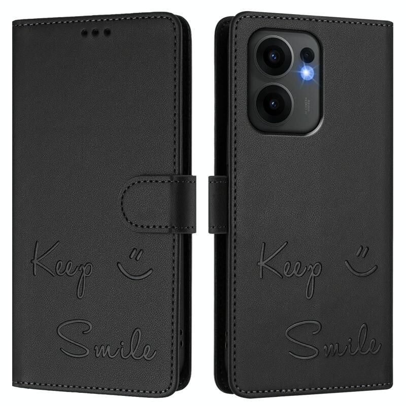 Θήκη τηλεφώνου από δέρμα με ανάγλυφο χαμόγελο και τεχνολογία RFID για OPPO Reno13 F 5G (Ροζ)