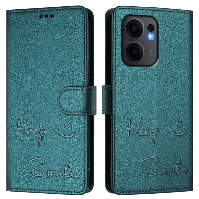 Θήκη τηλεφώνου από δέρμα με ανάγλυφο χαμόγελο και τεχνολογία RFID για OPPO Reno13 F 5G (Ροζ)