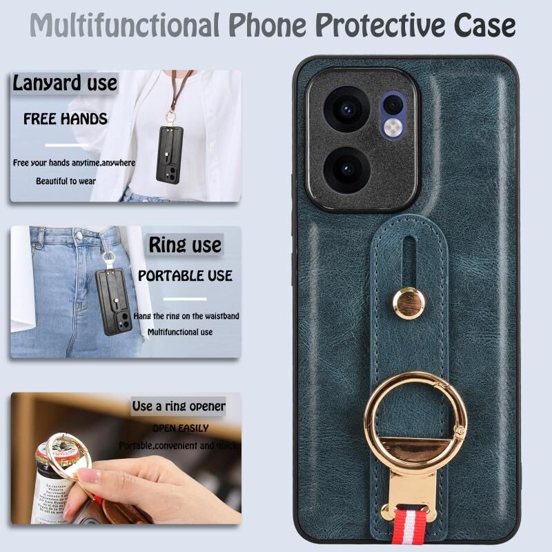 For OPPO Reno13 F 5G Wristband Leather Back Phone Case(Blue)