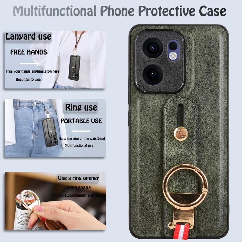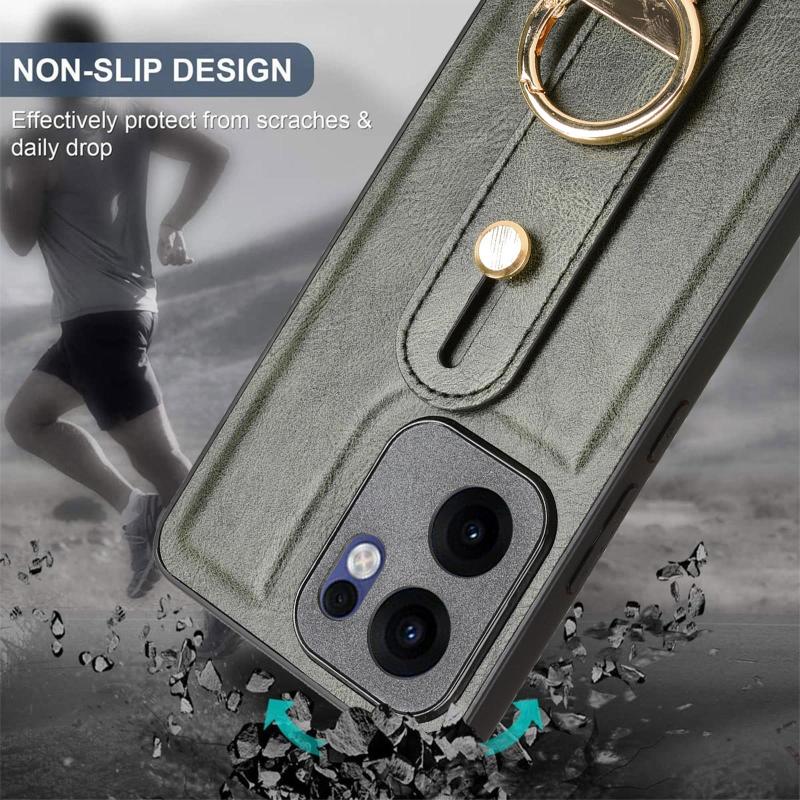 For OPPO Reno13 F 5G Wristband Leather Back Phone Case(Green)