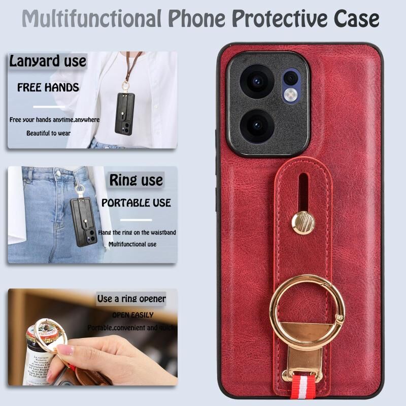 For OPPO Reno13 F 5G Wristband Leather Back Phone Case(Red)