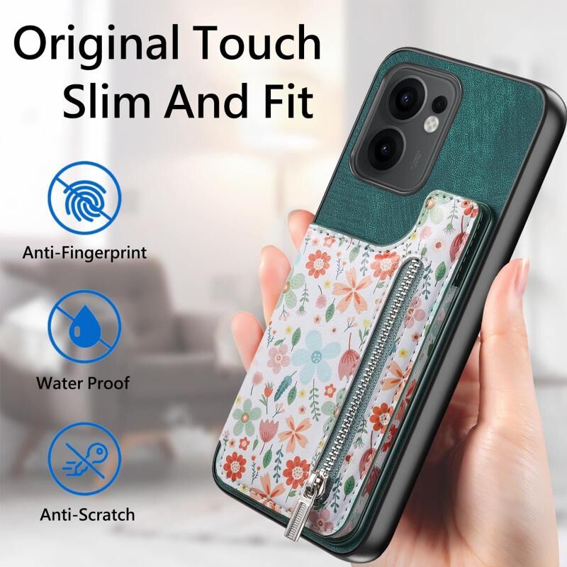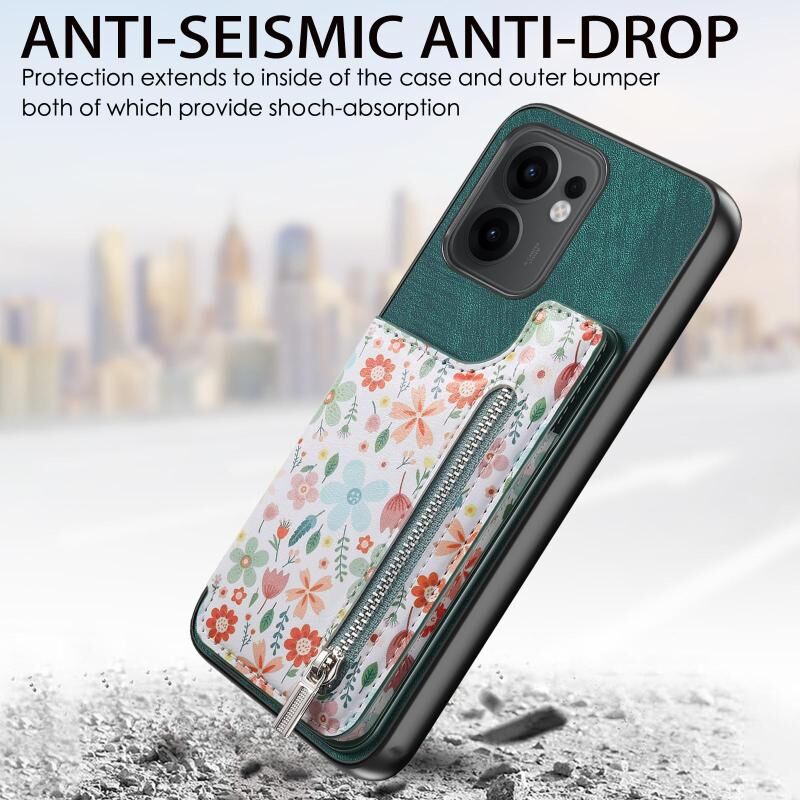 For OPPO Reno13 F Retro Painted Zipper Wallet Back Phone Case(Green)