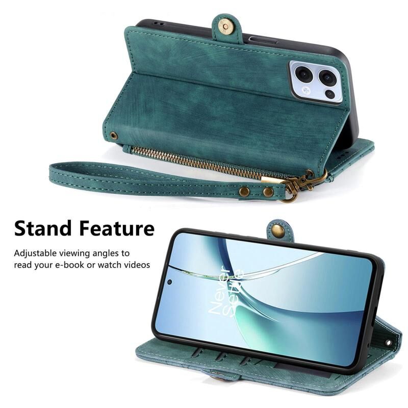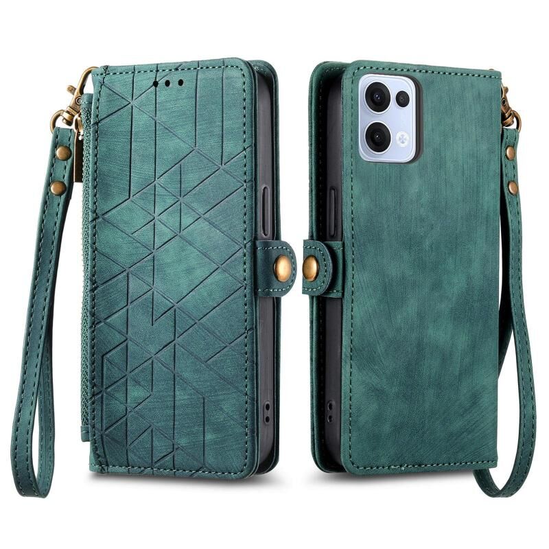 For OPPO Reno13 Geometric Zipper Wallet Side Buckle Leather Phone Case(Green)