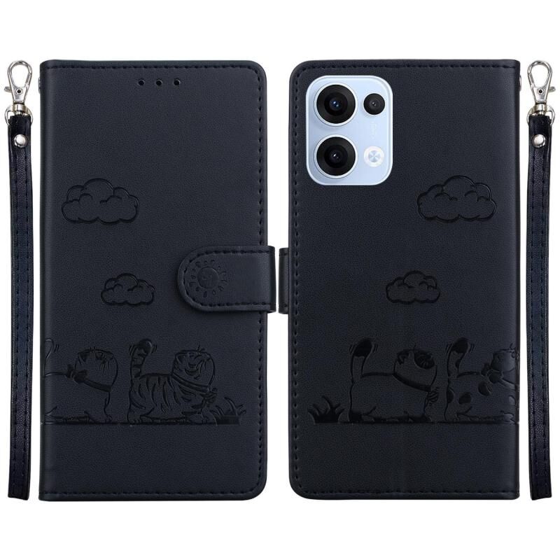Θήκη τηλεφώνου από δέρμα με χαριτωμένες γάτες RFID για OPPO Reno13 Global (Χρυσό Ρόδι)